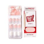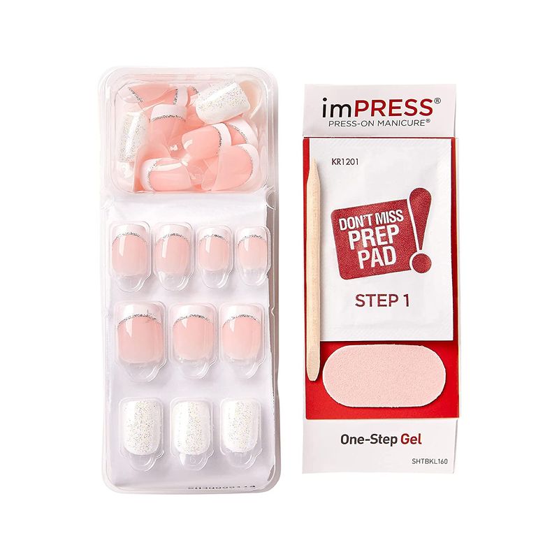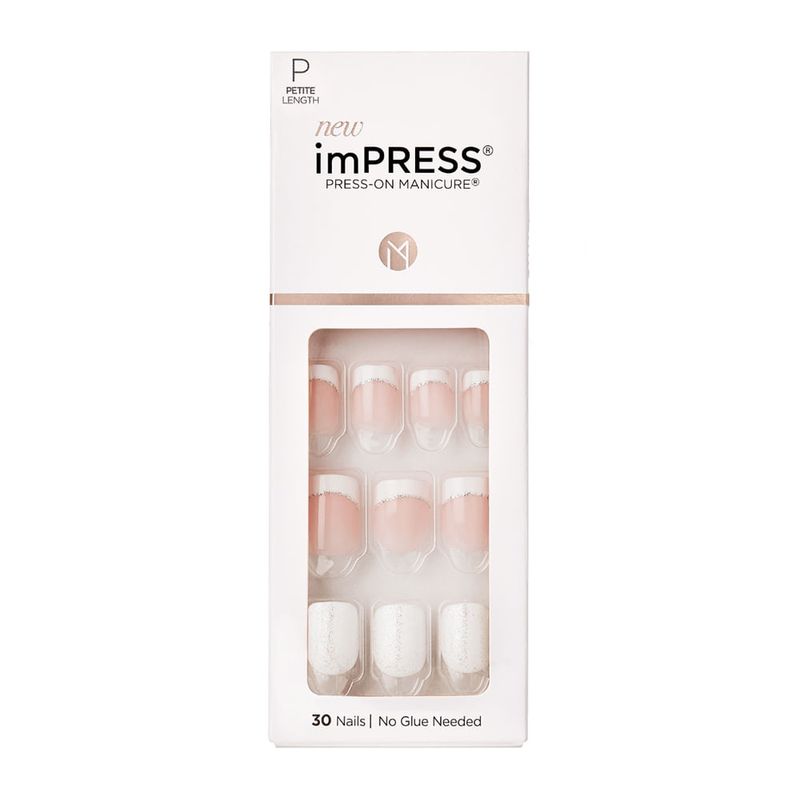 - imPRESS Press-On Manicure está disponible en tamaño "Short", para superficie de uñas de tamaño regular y “Petit” para uñas de superficie pequeña.