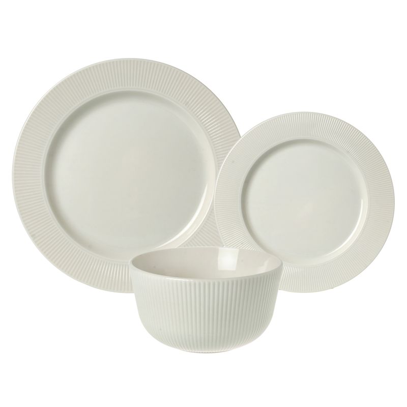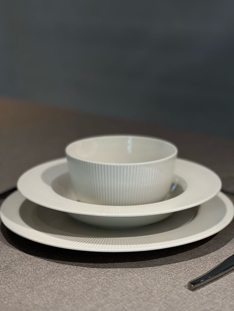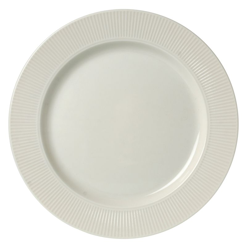 Elegancia y simplicidad en tu mesa. Este plato de porcelana blanca con delicada guarda estriada combina un diseño clásico con un toque moderno, ideal tanto para el uso diario como para ocasiones especiales.