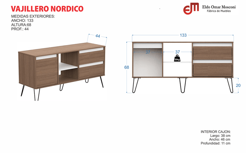 MEDIDAS PRODUCTO ARMADO: 133x44x68 cm.