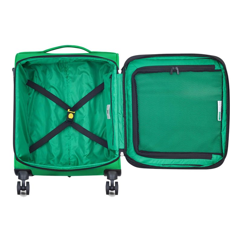 Un candado TSA para mantener las pertenencias seguras y protegidas. Un práctico bolsillo frontal con cremallera para guardar artículos y acceder a ellos fácilmente. Interior espacioso completamente forrado con correas de amarre y un divisor para una organización óptima. Brillantez expandible: personaliza tu equipaje para que se adapte a tu viaje con la función de cierre expandible. Libera espacio de almacenamiento adicional y asegúrate de estar siempre listo para los descubrimientos inesperados que se te presenten. El equipaje con bloques de color se adapta a tus necesidades y te permite llevar a casa más recuerdos sin comprometer el estilo. Deslizamiento sin esfuerzo: disfrute de los viajes más suaves con cuatro ruedas giratorias dobles, cada una adornada con nuestros tapacubos de marca. Navegue por aeropuertos y calles concurridas con gracia, dejando una declaración de estilo en cada giro. Comodidad a medida: personaliza tu experiencia de viaje con el sistema de carrito de dos niveles. Ajústalo a la altura que desees sin problemas, reflejando la atención al detalle que define la colección Color Block de Benetton x Delsey. Asas diseñadas para ti: disfruta de la facilidad de manejo con dos asas estratégicamente ubicadas en la parte superior y en el lateral. Levanta y maniobra tu equipaje sin esfuerzo con el toque de sofisticación de Benetton. Fortaleza de confianza: Proteja sus pertenencias más preciadas con el candado TSA incorporado, que le permite configurar un código personalizado. No solo garantiza la protección contra robos, sino que también otorga acceso sin problemas a la TSA para inspección, manteniendo el equilibrio perfecto entre seguridad y conveniencia. Elementos esenciales de acceso rápido: mantenga sus elementos esenciales al alcance de la mano con el práctico bolsillo frontal con cierre. Ya sean documentos de viaje, dispositivos electrónicos o bocadillos para el camino, el equipaje con bloques de color lo mantiene organizado mientras viaja. Organización: asegura tus pertenencias con precisión usando las correas de sujeción, mientras que el divisor interior con un bolsillo de malla con cierre garantiza una organización óptima. Disfruta del lujo de acceder y organizar tus artículos sin esfuerzo durante tus viajes.