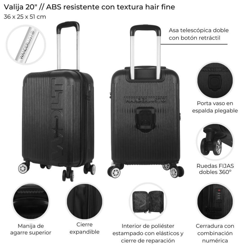 La valija Carry On Wanderlust urban mode es la compañera ideal para tus viajes. Con un diseño elegante en color negro y un tamaño compacto de 35 cm de ancho, 55 cm de alto y 20 cm de profundidad, esta valija es perfecta para quienes buscan funcionalidad sin sacrificar estilo. Su capacidad de 40 litros te permite llevar lo esencial para escapadas cortas o viajes de negocios.