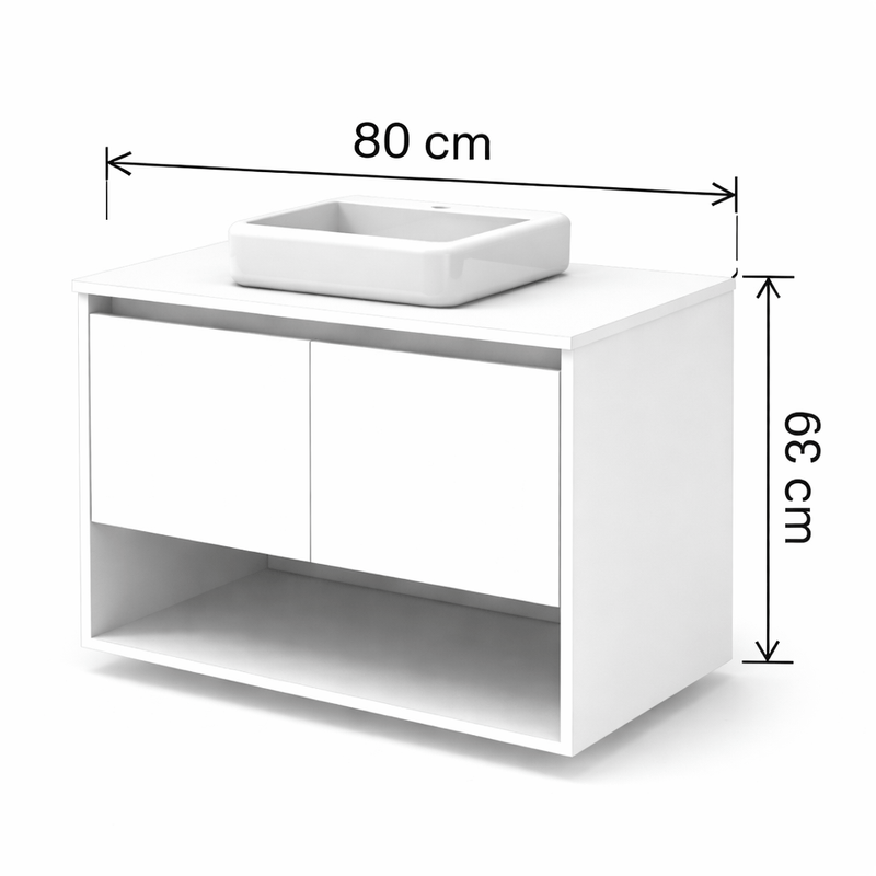Este vanitory combina diseño contemporáneo y funcionalidad. Fabricado en placa de melamina blanca que aporta calidez y luminosidad al ambiente. Cuenta con dos puertas que ocultan un amplio espacio de guardado, perfecto para mantener tus productos organizados y fuera de vista. Además, incorpora un estante abierto inferior, ideal para toallas, canastos o elementos de uso frecuente. Su sistema de armado es sencillo y práctico, pensado para que puedas montarlo sin complicaciones siguiendo las instrucciones .