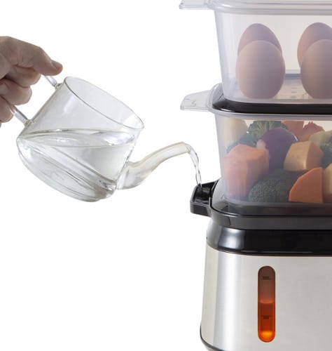 • 3 bandejas apilables. De 1 a 3 niveles: Capacidad total de las bandejas 9 lts.