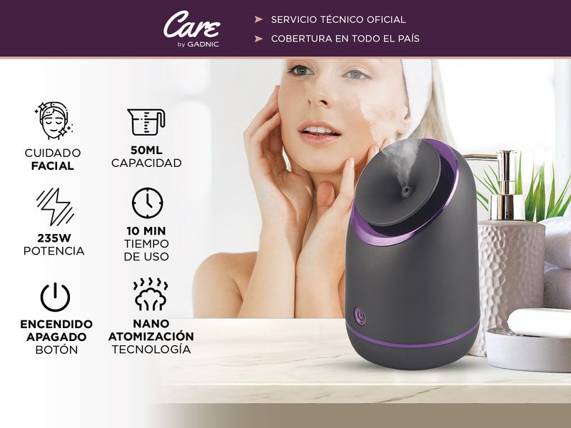 Es importante utilizar el vaporizador facial a 20 centímetros de distancia del rostro para recibir el vapor a una temperatura segura. Es ideal para utilizar en rutinas luego exponerse a ambientes con altos niveles de calor o frio con estufas o aires acondicionados que deshidratan la piel