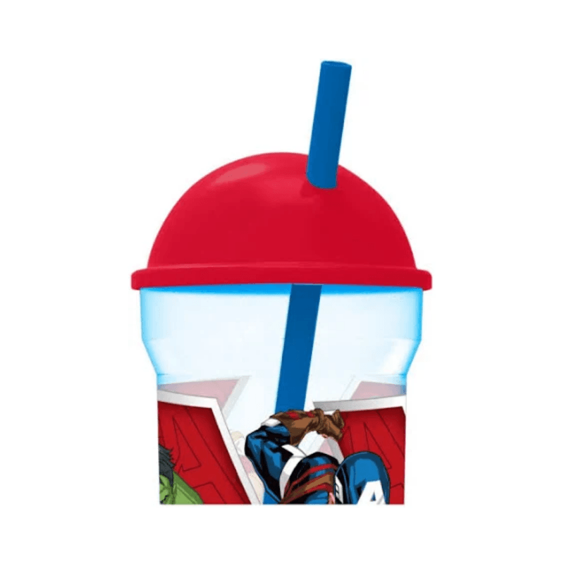 Vaso Transparente de Tapa Alta con capacidad de 460 ml y diseño Avengers. Ideal para mantener tus bebidas y llevar al cole.