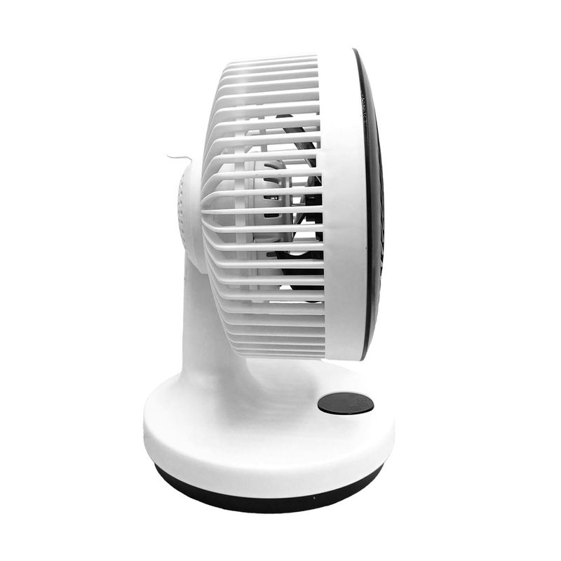 Diseño y Potencia: Potencia de 50 watts y 3 aspas plásticas negras con parrilla espiralada.