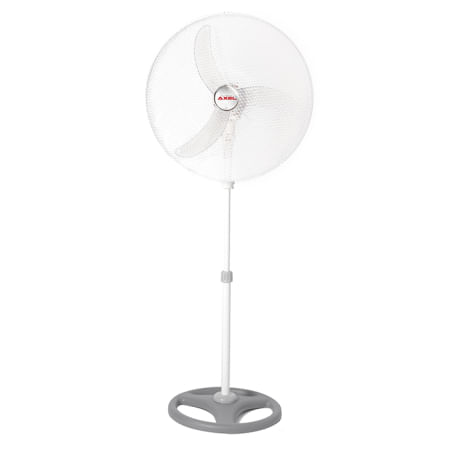 Ventilador de Pie Axel, cuenta con palas termoplásticas tipo avión que brindan un alto flujo de aire, su cabezal es oscilante e inclinable para una distribución óptima del aire, y su reja normalizada pintada asegura la protección de los usuarios, con una altura regulable de hasta 1,6 metros y una base redonda de gran estabilidad, este ventilador es fácilmente adaptable a cualquier espacio, su motor termoprotegido y reforzado de 3 velocidades garantiza un funcionamiento duradero y eficiente, mientras que su hélice de 20" y su potencia de 60 watts aseguran un muy buen caudal de aire.