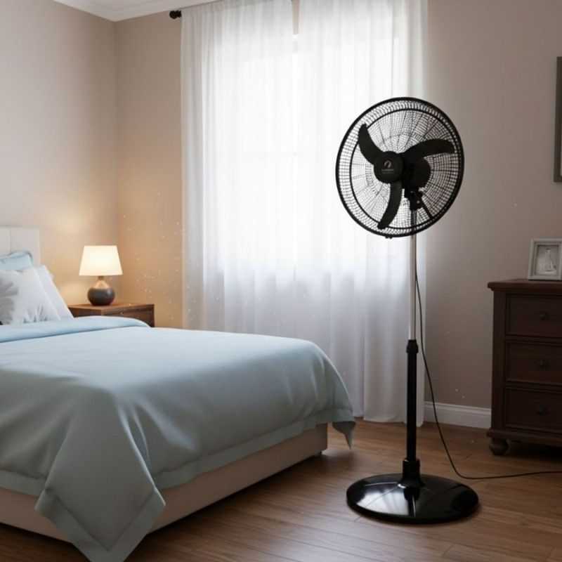 VENTILADOR DE PIE IVP202 20" 90W 3V INDELPLAS -Potencia de 90w -3 velocidades -Cantidad de aspas: 3 -Material aspas: plastico -Altura regulable -Frente metalico -Bobinado de cobre -Oscilación -Base estable -Super silencioso -Bajo consumo -Color negro -Modelo IVP202 -Garantía fabricante 12 meses -Origen Argentina