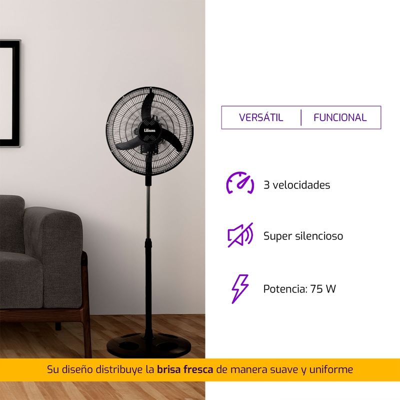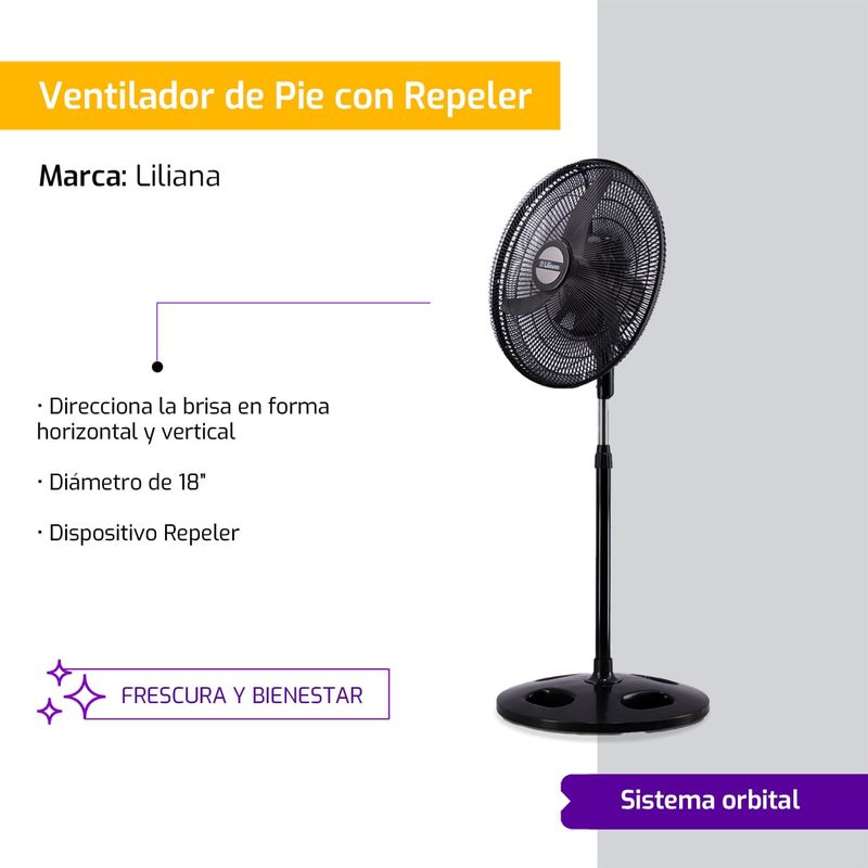 Ventilador de Pie Orbital Liliana Vprn18 3 Aspas Negras Con Sistema Repeler