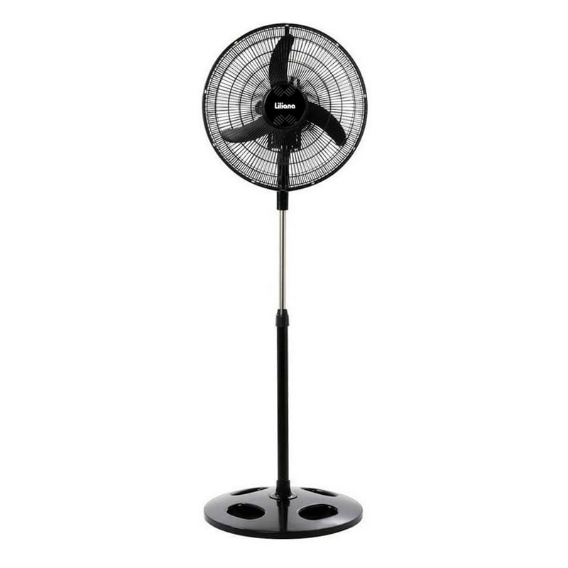 • El ventilador de pie Liliana VPRN20 viene con parrilla metálica y 3 aspas plásticas de color negro.