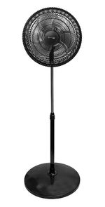 Cuenta con parrillas plásticas espiraladas para mayor seguridad y una base redonda plástica estable que garantiza firmeza durante su funcionamiento. Funciona con alimentación 220 V y presenta un atractivo acabado en color negro.