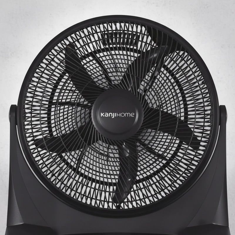 VENTILADOR TURBO KANJI. Modelo: FH1405. TURBO de 14". 3 velocidades. Inclinación. Potencia de 60W. 5 Paletas plásticas. Estructura y aspas negras. Dimensiones de embalaje: Ancho: 45 CM. Altura: 50 CM. Prof: 15 CM. 50hz/220V.