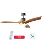 Diseño minimalista: Cuerpo niquel satinado y aspas de madera maciza para un estilo moderno.