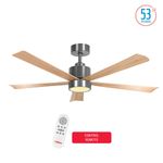 Diseño Elegante: Las 5 palas de ABS símil madera y el cuerpo de níquel cepillado se integran a la perfección en decoraciones modernas.