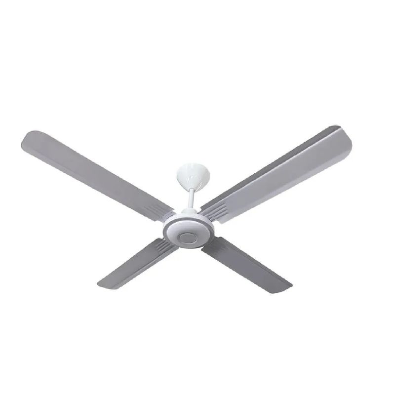 4 palas metálicas blancas de 1.2 metros (48”): Ofrecen una amplia cobertura y un flujo de aire uniforme que refresca grandes espacios.