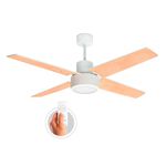 Ventilador De Techo plantón LED, Micro texturado, Ventilador de techo con aspas de madera y plafón led, Diseño minimalista, 4 aspas de madera miden 46.5 cm de largo cada una, 5 velocidades, 85 Watts, Motor 100% cobre, Motor montado sobre rulemanes.