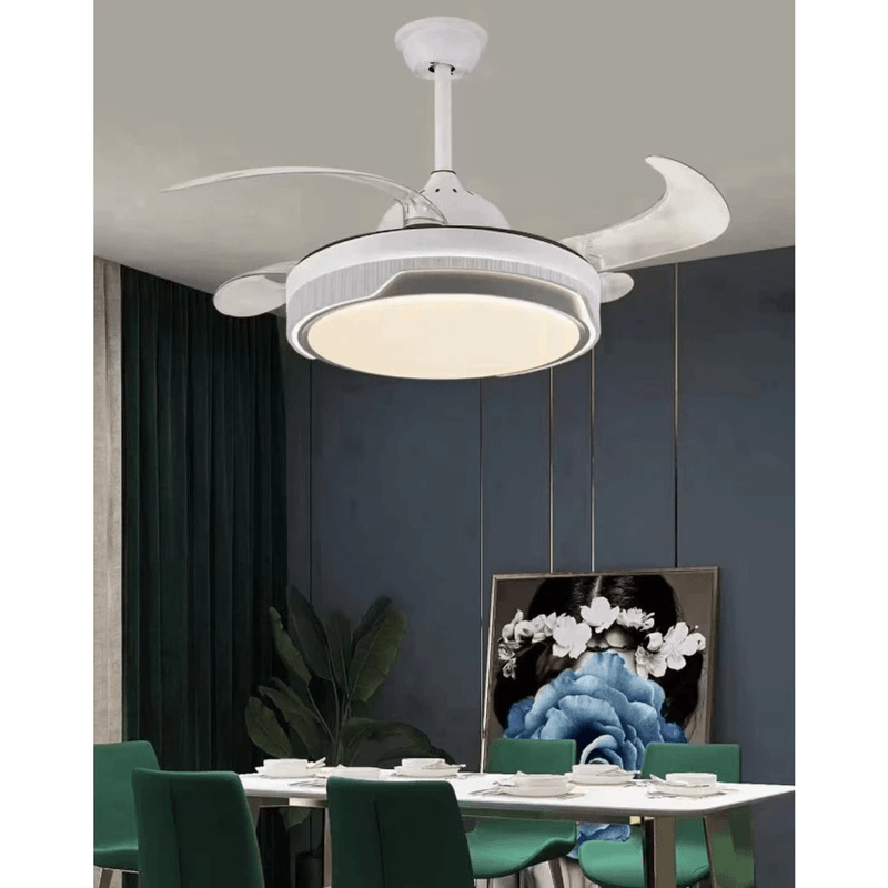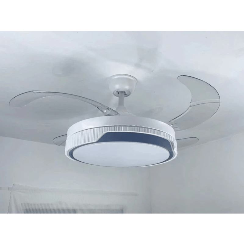 VENT TECHO RETR. EVA-42-W1 LED BL INSIGNA - Ventilador retr¦¡ctil - Con control remoto - Motor inverter brushless (Sin escobillas) 28W - 6 velocidades - L¦¡mpara con 3 todos de luz (luz fr¦_a,luz natural,luz c¦¡lida) 36W*2 - Dimensi¦nn l¦¡mpara: 48-52 cm - Dimensiones de aspas externas: 107cm - Instalaci¦nn simple (sin necesidad de extender cables para controlar desde la pared) - Modelo EVA-42-W1 - Garant¦_a fabricante 12 meses - Origen China