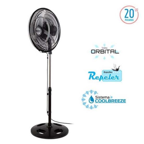 Este sistema permite que el cabezal del ventilador se desplace sobre su eje en forma elíptica, distribuyendo la brisa fresca en forma suave y uniforme hacia ambos lados como así también hacia arriba y hacia abajo. Esta acción posibilita la recirculación permanente del aire, permite bajar la temperatura del ambiente brindando una confortable sensación de frescura y bienestar. Dispositivo Repeler