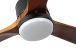 -Diseño: Cuerpo de metal color negro y 3 aspas de madera maciza color nogal.