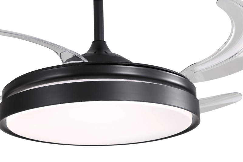 Con sus 4 aspas retráctiles de acrílico transparente, se despliega para ofrecer una ventilación potente y silenciosa, y se repliega discretamente cuando no está en uso, aportando un estilo minimalista a cualquier ambiente.