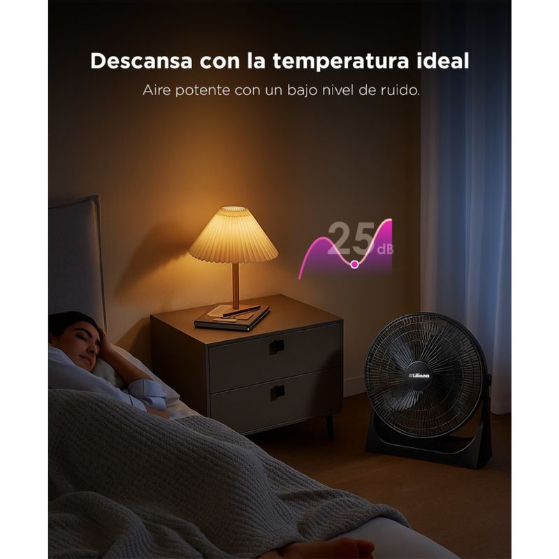 Su sistema de aspas metálicas de 18" genera un flujo de aire intenso, ideal para refrescar ambientes rápidamente. Diseñado para uso continuo sin perder rendimiento.