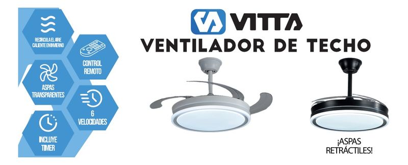 El Ventilador Vitta de Techo con Luz combina elegancia y funcionalidad en un solo producto. Fabricado con acero de alta calidad, este ventilador no solo garantiza durabilidad, sino también un estilo moderno y sofisticado para cualquier espacio. Su sistema de iluminación integrado proporciona distintos tonos e intensidad de luz, perfecta para crear ambientes agradables. Con aspas retractiles y un motor silencioso, este ventilador es ideal para mantener tu hogar fresco y bien iluminado, sin sacrificar el estilo.