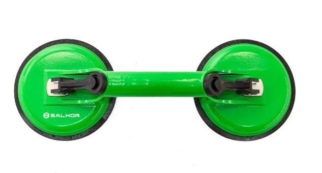 Ventosa doble profesional diseñada para la manipulación segura de superficies lisas y no porosas. Ideal para trabajos de colocación y traslado de vidrios, porcelanatos, cerámicos y otros materiales delicados, ofreciendo firmeza, control y seguridad.