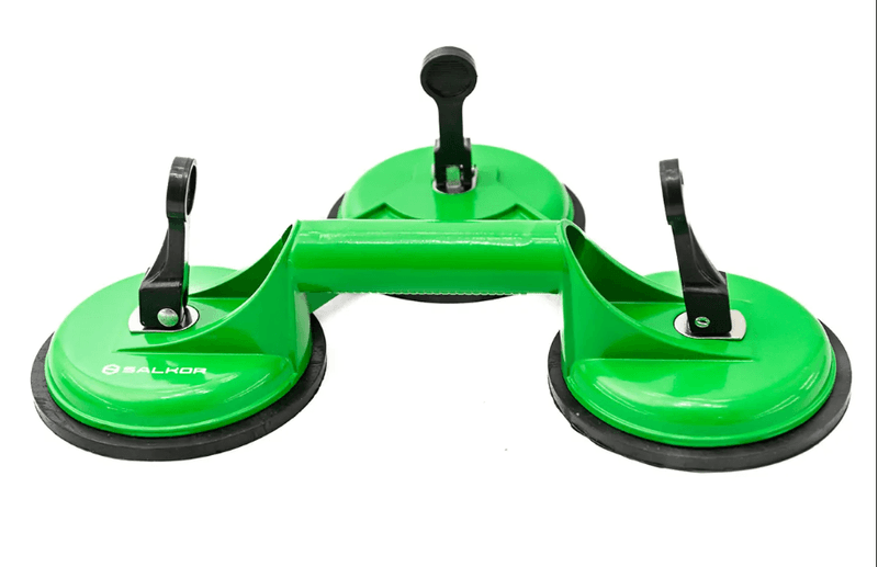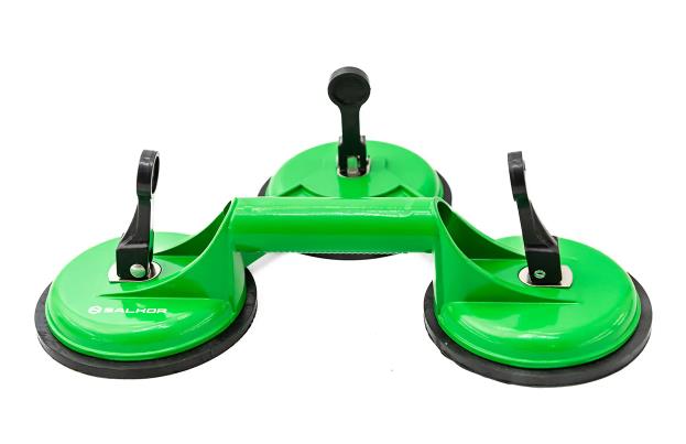 Ventosa triple de alta resistencia, ideal para la manipulación segura de vidrios, porcelanatos y otras superficies lisas y no porosas. Su cuerpo de aluminio brinda mayor durabilidad y un agarre firme para trabajos exigentes.