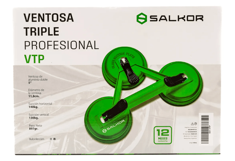 Ventosa Triple Profesional Aluminio Diam 12Cm / 130Kg Salkor (601.Vtp)