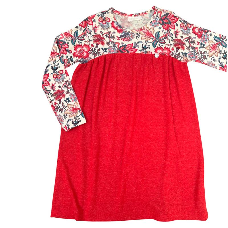 VESTIDO SUELTO NIÑA, SU PARTE INFERIOR ES DE LANILLA SUVE Y ABRIGADA