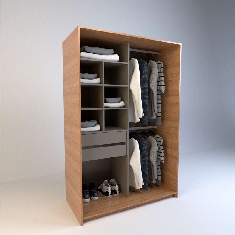 - Soporte metálico para perchas: Facilita el colgado de ropa sin ocupar más espacio.