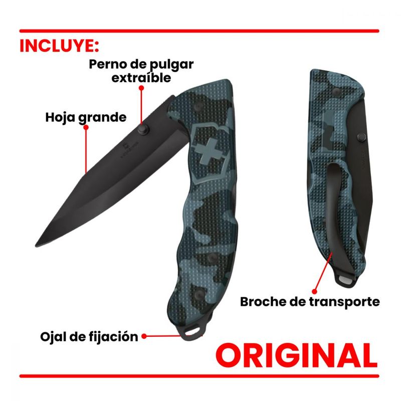 Plegable con perno de pulgar extraíble, perfecta para la aventura diaria.