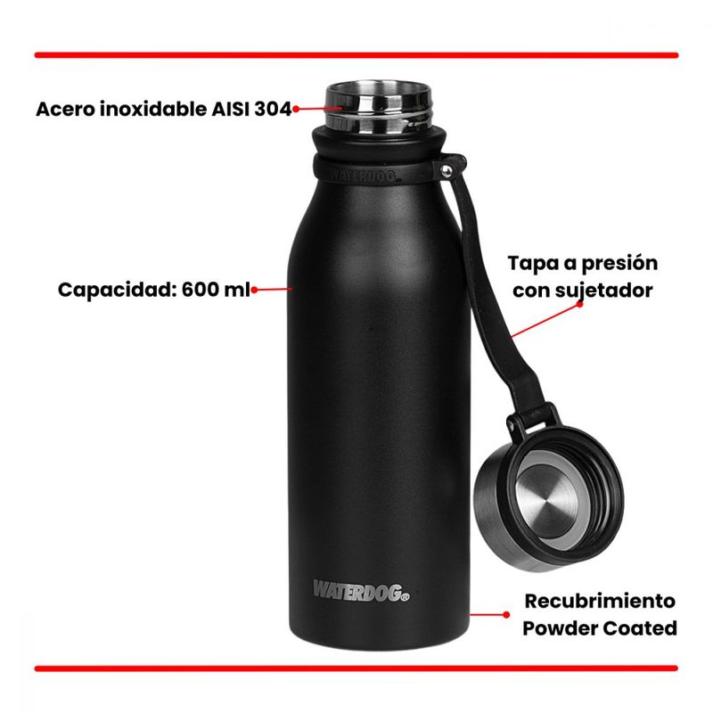HogarCocinaRecipientes térmicosWaterdog Botella deportiva Acero Inoxidable 600cc Negro