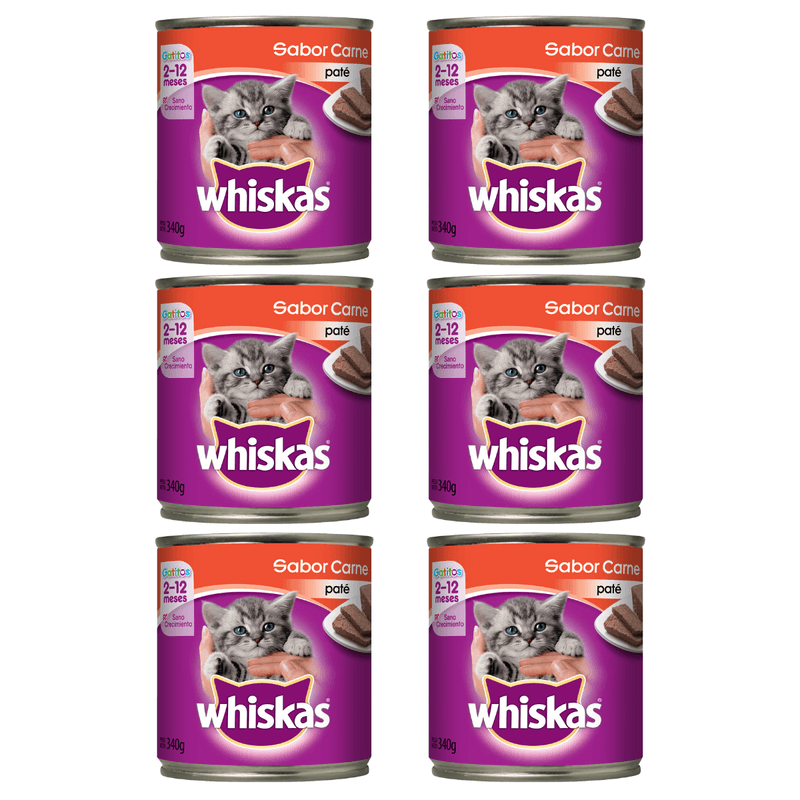 Whiskas Alimento Húmedo Lata Gatitos Carne X6 Unidades