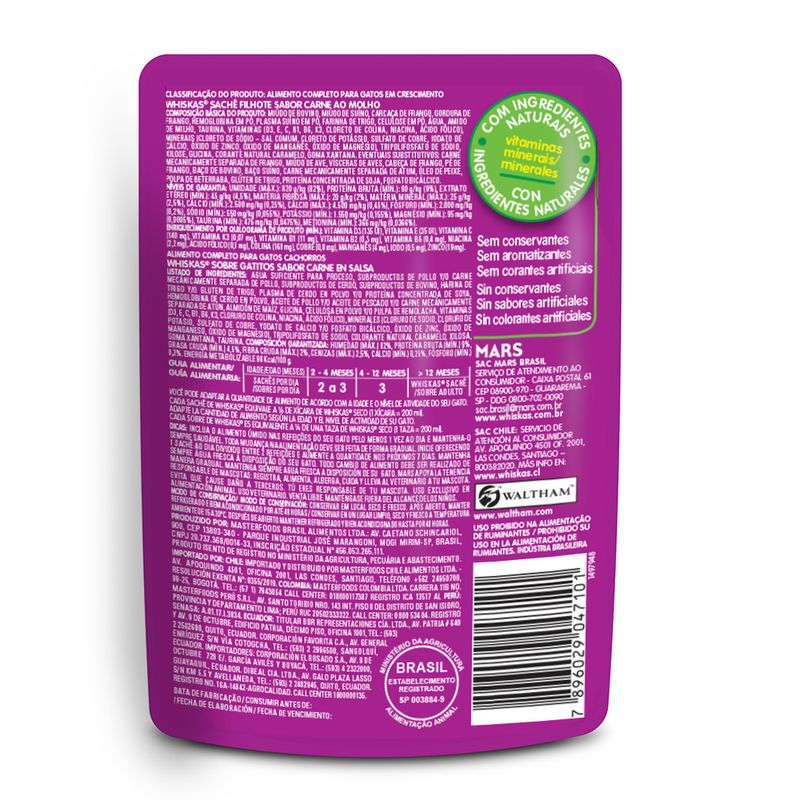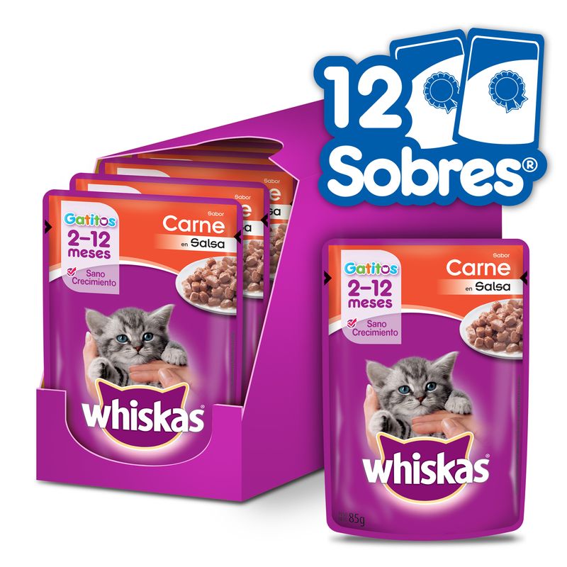WHISKAS ALIMENTO HÚMEDO SOBRECITO GATITOS CARNE SALSA 12 UN