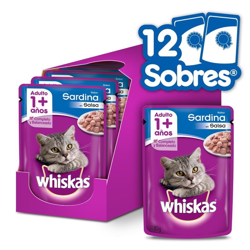 WHISKAS ALIMENTO HÚMEDO SOBRECITO GATO SARDINA SALSA 12 UN