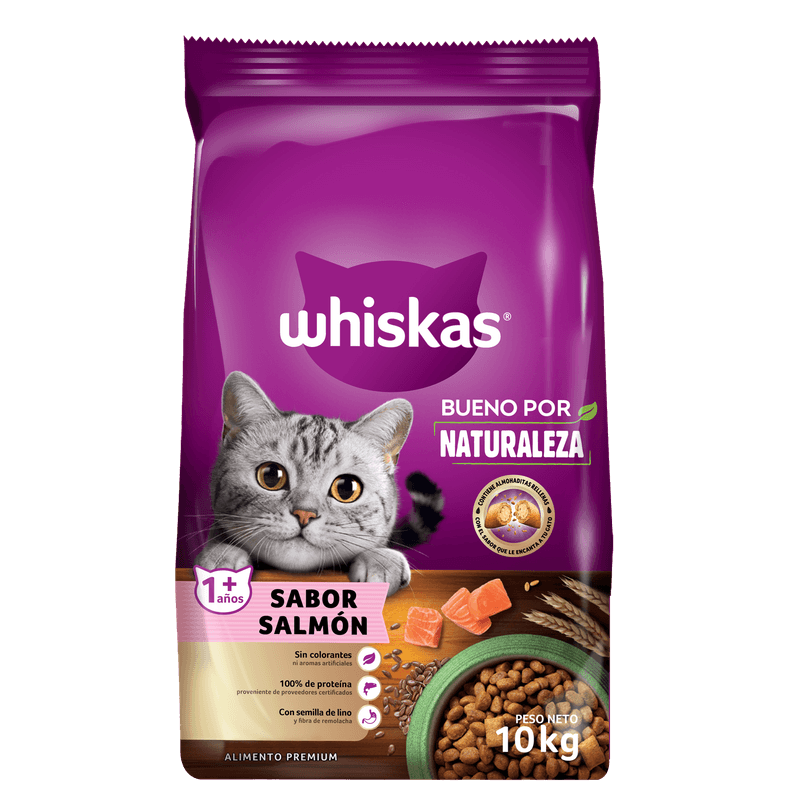 Whiskas bueno por naturaleza sabor salmón - alimento 100% completo y balanceado para gatos adultos (seco)
