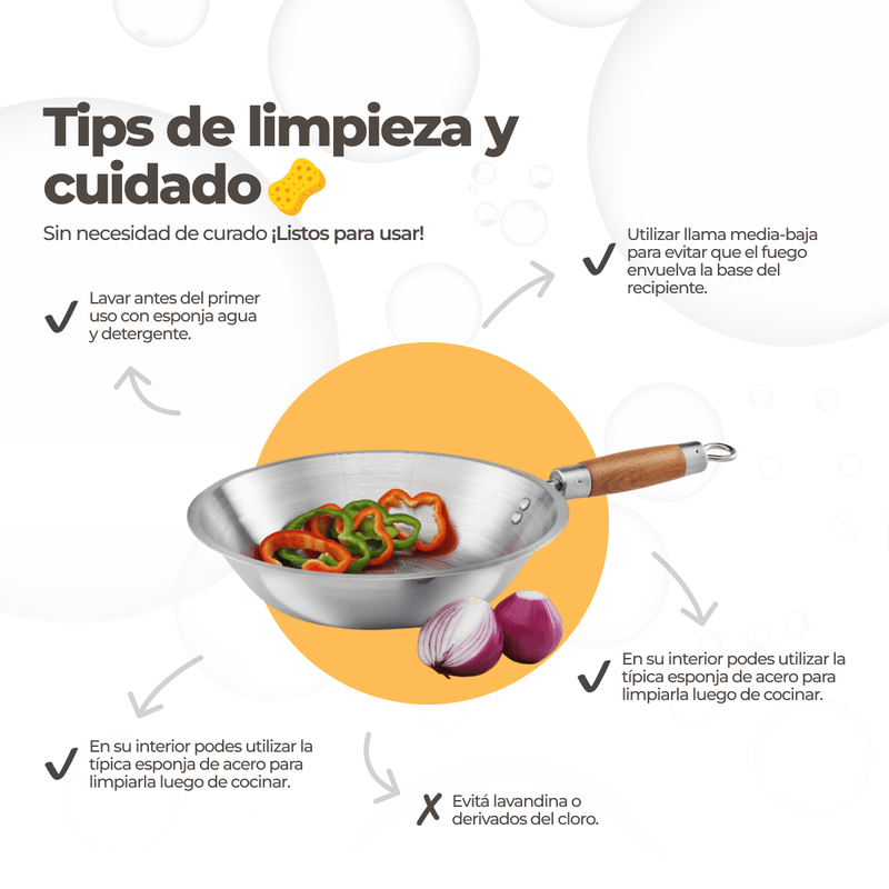 ✔ Para mantener su brillo exterior, usá esponjas suaves y evitá productos abrasivos.