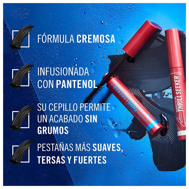 ¡La máscara de pestañas Wonder'Volume Thrill Seeker de Rimmel ahora Waterproof! Esta máscara de pestañas a prueba de agua tiene una fórmula cremosa y un cepillo de fibra ultrasuave agarra cada pestaña para un volumen intenso desde la raíz a la punta. Su fórmula resistente al agua proporciona 24 horas de larga duración con un volumen audaz instantáneo. Una máscara que es a prueba de manchas, a prueba de escamas y no hace grumos.
