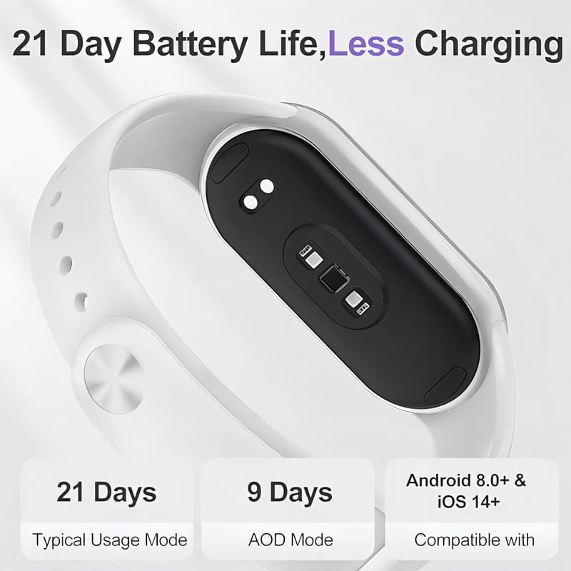 Carga rápida, aventuras más largas: ¡Olvídate de las molestias de la carga diaria! Disfruta de una duración de batería excepcional de 21 días con una sola carga. Y cuando necesites más energía, solo tardas una hora en recargar completamente el dispositivo con la carga rápida. ¡Libertad sin límites!