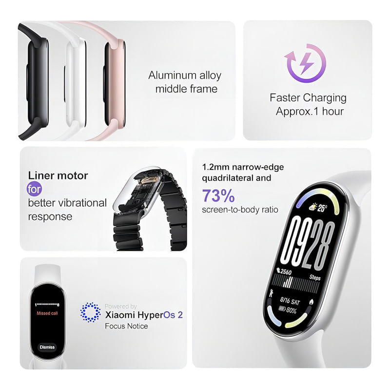Brillo HBM de 1500 nits, visible con cualquier luz: Con un 25% más de brillo que antes, la pantalla alcanza un brillo extraordinario HBM de 1500 nits, lo que permite leer todos los mensajes incluso con luz solar directa. Una experiencia más inteligente con HyperOS: Disfruta de una interfaz de usuario más fluida, conectada y eficiente con el avanzado Xiaomi HyperOS 2. Benefíciate de un rendimiento mejorado del sistema e interacciones más inteligentes en tu muñeca.
