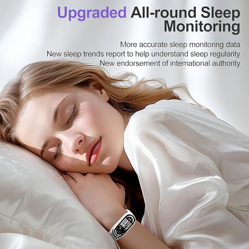 Domina tu recuperación nocturna: Descubre los secretos de tu sueño con una monitorización del sueño completa y mejorada. Obtén información completa sobre las fases y la calidad de tu sueño, lo que te ayudará a despertarte renovado y optimizar tu bienestar.