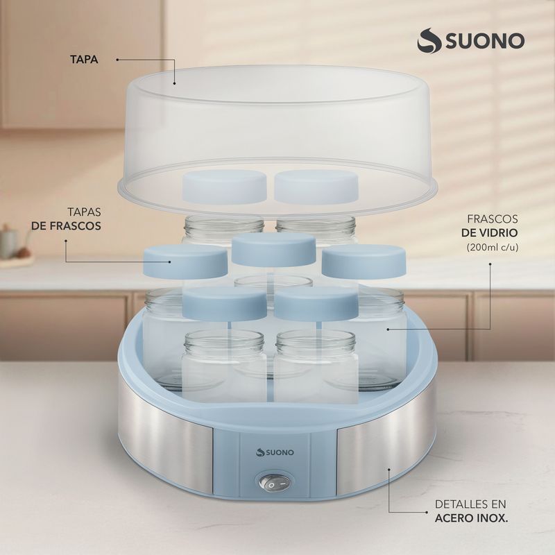 Yogurtera Suono 7 Vasos de Vidrio Yogur Casero 1.4 L – Frescura y Salud en tu Cocina