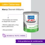 Es una pintura al látex de muy buena calidad especialmente formulada para lograr un acabado muy blanco con muy buena adherencia y resistencia a los hongos. Su alta porosidad evita los problemas de condensación típicos de superficies selladas.