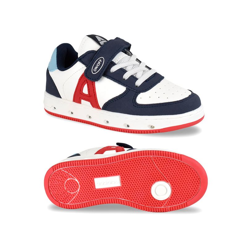 Combinando un estilo urbano clásico con la magia de las luces LED, las Zapatillas Addnice Boston son el calzado ideal para que los más chicos se diviertan con comodidad. Su diseño robusto y colorido las convierte en las compañeras perfectas tanto para el colegio como para las tardes de juego. Suela con luces LED integradas que se activan al caminar. ¡Incluye un botón ON/OFF en la tira de velcro para que elijas cuándo brillar! Sistema dual de cordones elásticos y velcro reforzado, ideal para fomentar la autonomía de los niños al calzarse solos. Capellada confeccionada en material sintético de alta calidad y fácil limpieza, con detalles en colores vibrantes y la icónica "A" lateral. Interior totalmente forrado en textil suave y cuello acolchado para evitar roces, garantizando comodidad durante todo el día. Suela de goma antideslizante que ofrece estabilidad en diferentes superficies, brindando seguridad en cada salto y carrera.