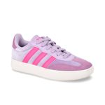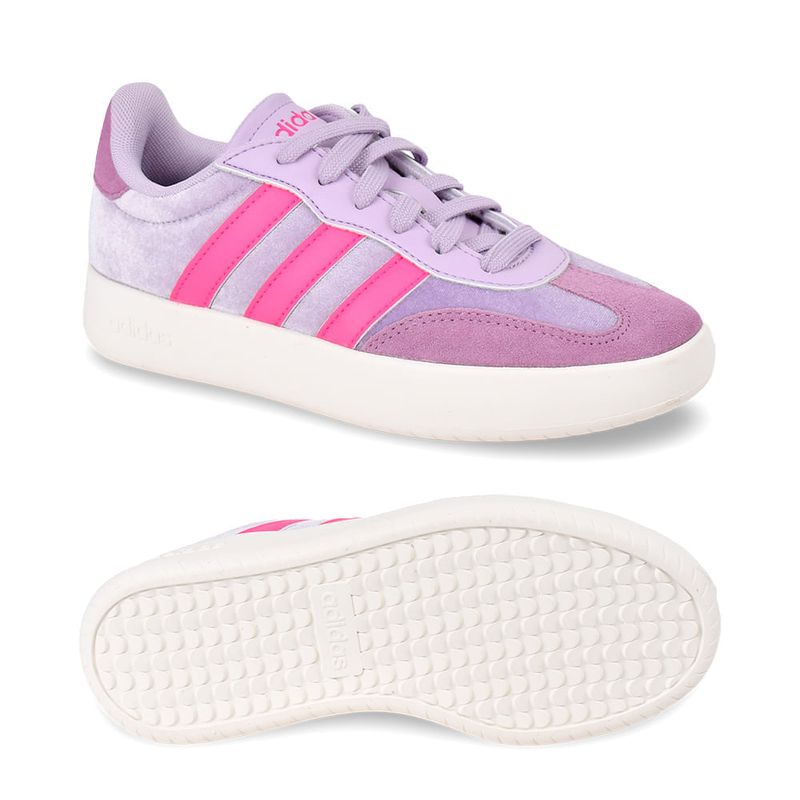 Diseñadas para quienes aprecian el estilo atemporal, las Zapatillas Adidas Barreda toman elementos icónicos del diseño deportivo, como la puntera en forma de T y las distintivas tres tiras, y los renuevan para el presente. La capellada (parte superior) está confeccionada con una suave combinación de cuero sintético y ante, lo que no solo garantiza una durabilidad excepcional, sino que también le otorga una textura elegante y de alta calidad. El diseño se completa con una suela de goma tipo cupsole con plataforma, que no solo añade un extra de altura, sino que también ofrece una pisada amortiguada y confortable. El forro interior textil asegura una experiencia de uso cómoda y transpirable durante todo el día. Con su vibrante combinación de colores, como el lila, rosa y violeta, estas zapatillas son la opción perfecta para añadir un toque de color y personalidad a tu estilo diario. Ya sea para combinar con tus joggers, jeans o una falda, las Adidas Barreda son un calzado versátil que captura la esencia del espíritu retro con una actitud moderna.