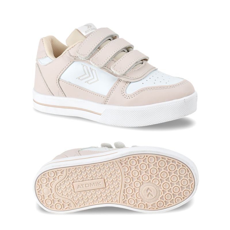 Las Atomik Ronnie son el calzado ideal para acompañar el ritmo activo de los más pequeños. Con un diseño de estilo urbano y skater, estas zapatillas combinan perfectamente la resistencia necesaria para el juego diario con un look moderno que se adapta tanto al colegio como a las salidas de fin de semana. Equipadas con tres tiras de abrojo (velcro) que permiten un calce rápido, sencillo y seguro, fomentando la autonomía de los niños. Su capellada está confeccionada en sintético símil cuero, lo que facilita la limpieza y asegura una mayor durabilidad ante el uso intensivo.El interior cuenta con forrería textil suave y una plantilla con memoria que se adapta a la forma del pie, brindando confort durante todo el día. La suela de goma o TR bicolor es antideslizante, proporcionando la estabilidad y tracción necesarias para correr y saltar con total seguridad en diversas superficies.