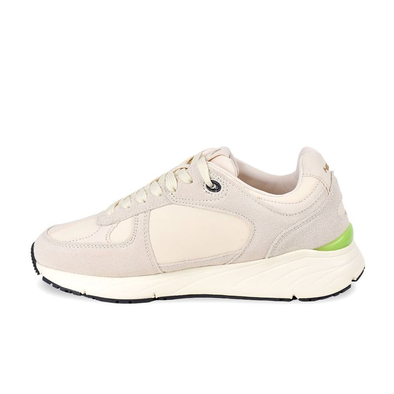 La mediasuela de espuma proporciona una pisada suave y estable, mientras que la suela de goma garantiza buen agarre en superficies urbanas. El interior acolchado acompaña el pie con una sensación cómoda y ligera.
