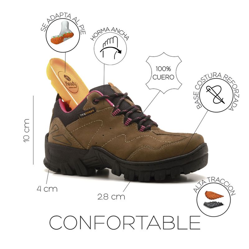Descubre la zapatilla de trekking outdoor KEADY, diseñada para los desafíos más exigentes. Fabricada con cuero vacuno genuino y resistente tela cordura, esta bota es perfecta para cualquier terreno. Su base de caucho ofrece una tracción y agarre excepcionales, mientras que su plantilla de PU de 18 mm brinda una amortiguación superior para largas jornadas. Su forro textil respirable mantiene tus pies frescos en todo momento. Con su base cosida para mayor durabilidad y un confort acolchado insuperable, esta bota garantiza un rendimiento excelente en cada aventura. Además, cuenta con cordones resistentes de poliéster y alpinos metálicos que aseguran un ajuste firme y duradero, ideal para actividades de alto rendimiento. Y lo mejor, es resistente al agua para que tus pies se mantengan secos.