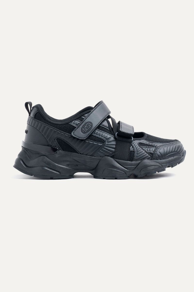 Zapatillas con base deportiva tipo guillermina en mesh y tiras de símil cuero con elástico para un ajuste cómodo. Match con vestidos casuales o jeans wide leg.